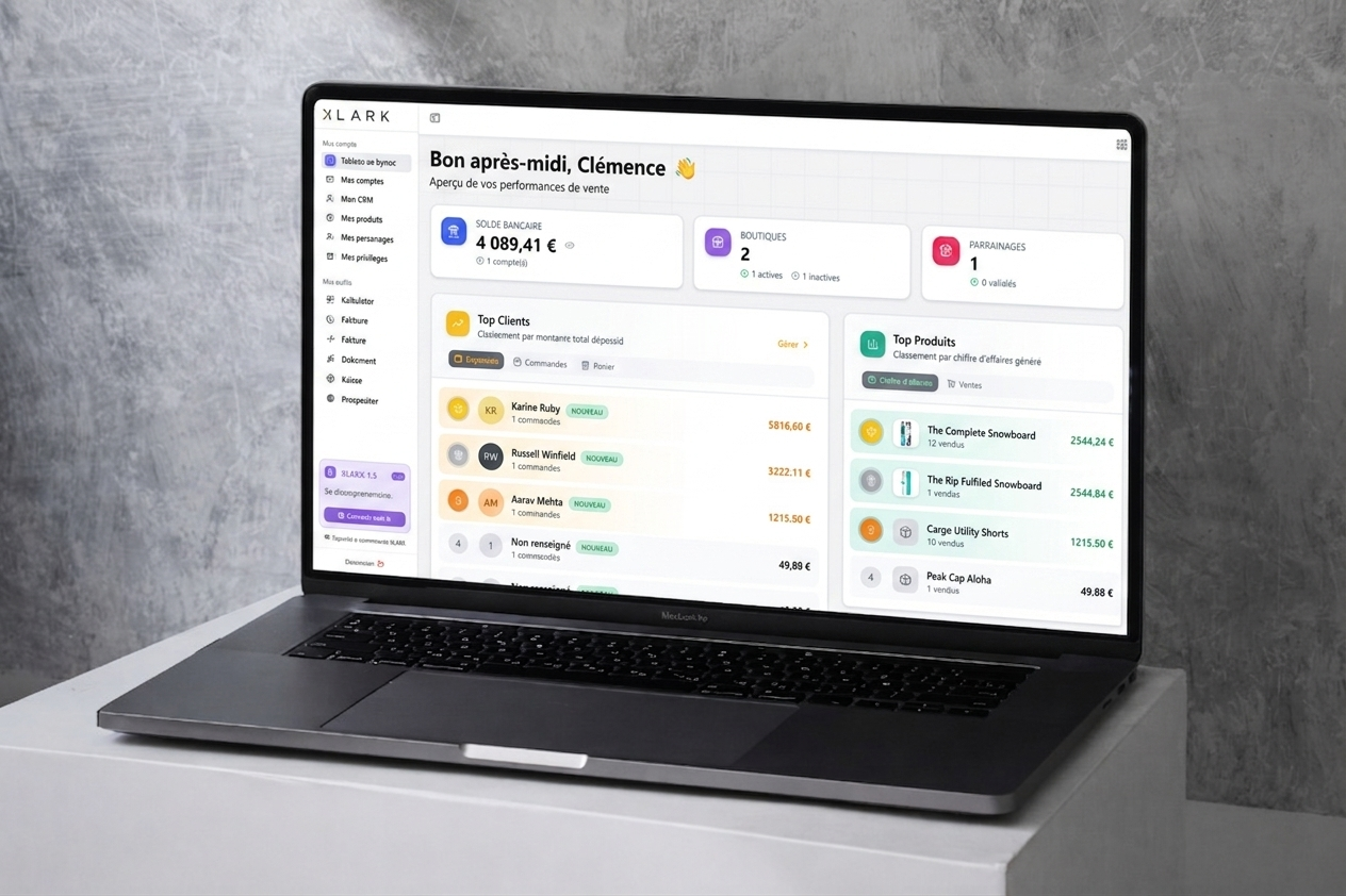 Plus qu'un simple outil, Klark est une communauté d'entrepreneurs dynamique offrant un écosystème complet avec des avantages exclusifs, des outils SaaS intégrés, le tout dans une seule application. Grâce à Klark, vous pouvez centraliser la gestion de votre entreprise e-commerce, CRM intelligent, facturation, calendrier, agrégation bancaire et bien plus encore